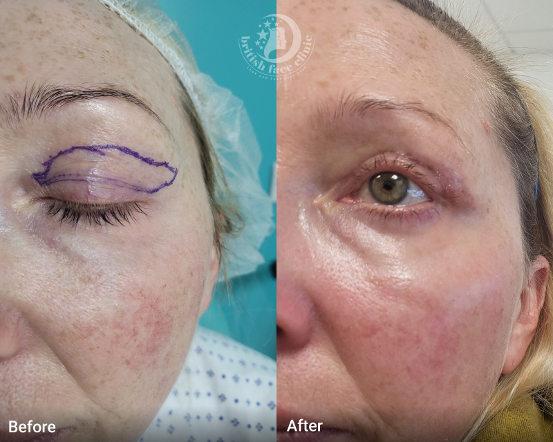 During the consultation with Mr Supriya, Sarah’s concerns were heard, and she left with a personalised treatment plan that matched her aesthetic goals. On the day of the surgery, she felt calm and well-prepared, thanks to the detailed pre-op instructions.The procedure, lasting about one hour, was comfortable with minimal discomfort. Mr Supriya removed excess skin and fat under Local Anaesthetics, restoring a more youthful contour to her eyelids.